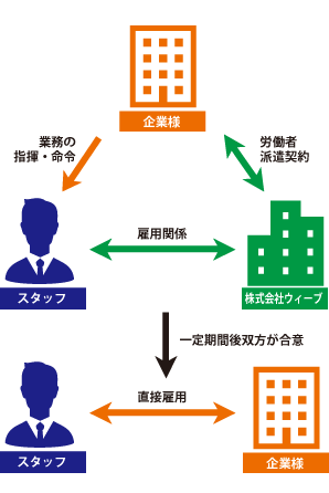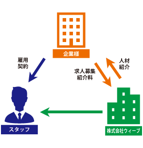 - 企業様の求める人材を弊社で紹介し、直接雇用をして頂きます。